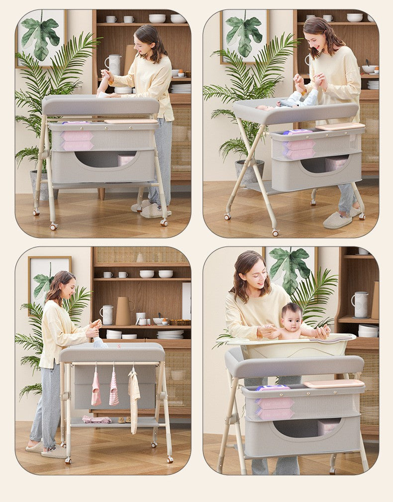 Portatif Bebek Alt Değiştirme Bakım Masası Sepetli Organizer Katlanabilir Taşınabilir İstasyon Tekerlekli Askılık