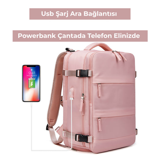 Su Geçirmez 16" inç 30L Ayakkabı Bölmeli Seyahat Sırt Çantası - Laptop Bölmeli, USB Şarj Girişli