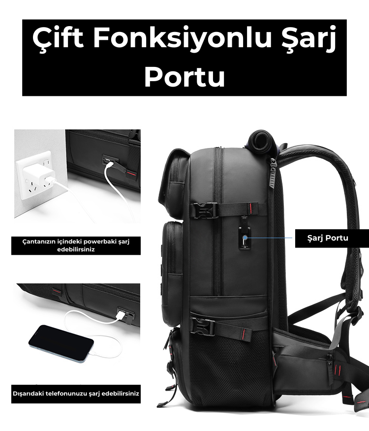Şarj Portu: İçerisine koyacağınız powerbank ile telefonunuzu dışarıda şarj etme imkânı